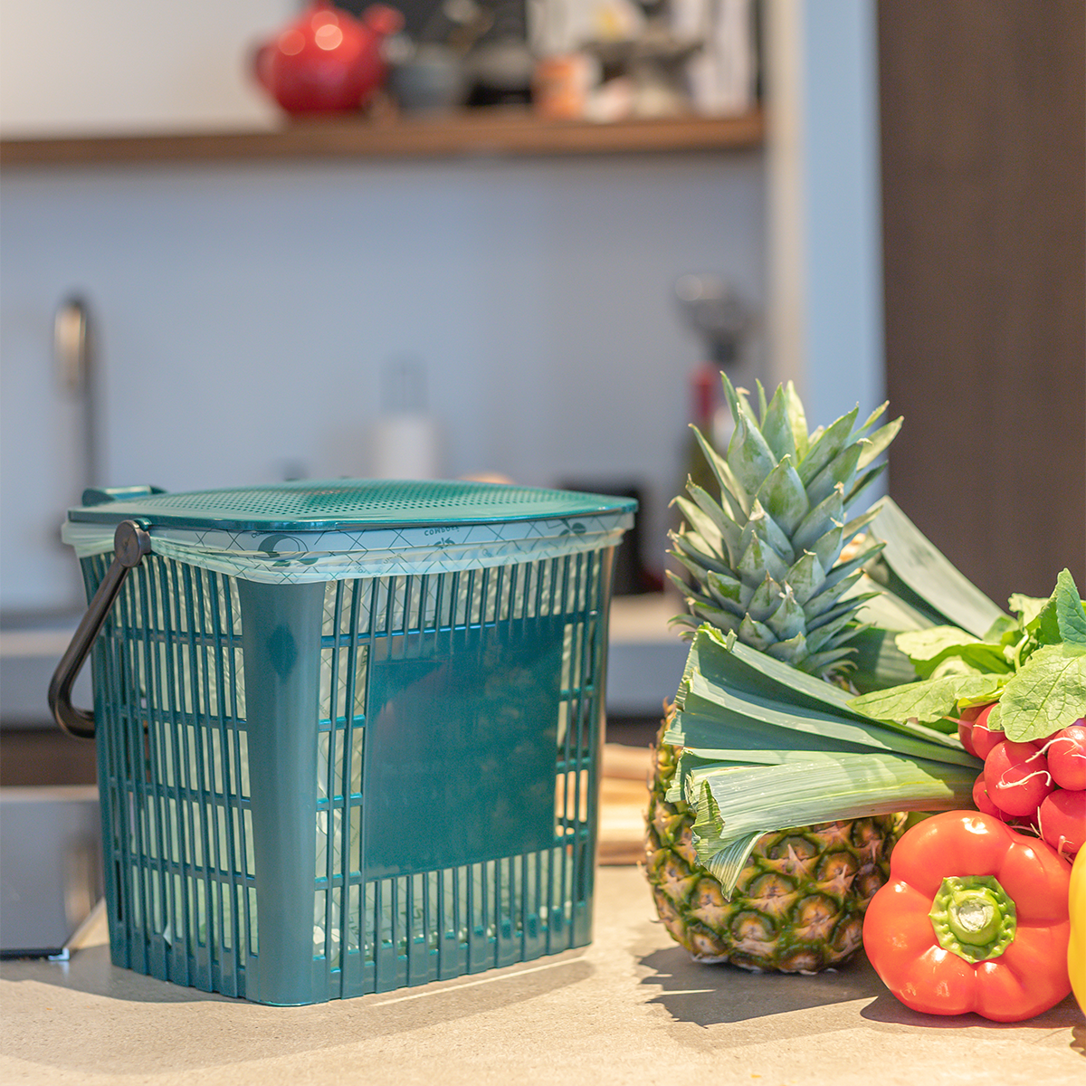 Dit praktische afvalbakje is perfect te gebruiken in combinatie met een ademende composteerbare afvalzak. Doordat het afvalbakje een ventilerende werking heeft, worden zowel onaangename geurtjes en overlast van fruitvliegjes voorkomen.