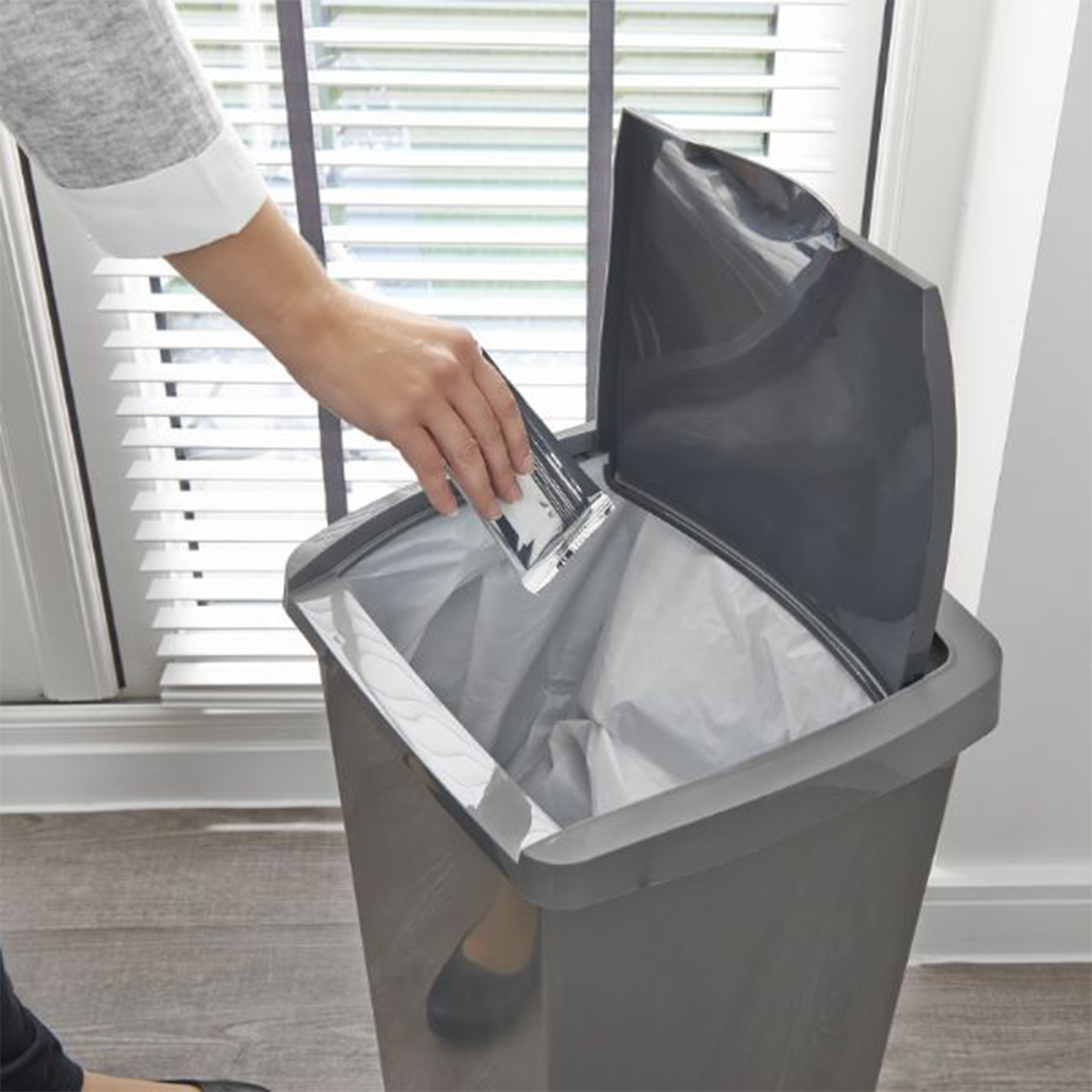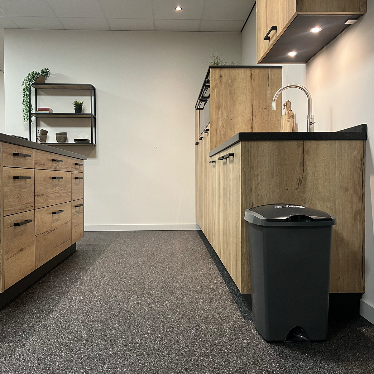 Het gebruiksgemak staat centraal bij dit ontwerp. Het deksel til je eenvoudig met de hand omhoog en blijft openstaan tijdens gebruik, zodat je afval gemakkelijk kunt weggooien. Na afloop sluit het deksel goed af, wat helpt om nare geurtjes te beperken. Het afneembare deksel maakt het vervangen van afvalzakken eenvoudig en zorgt ervoor dat de emmer snel en hygiënisch schoon te maken is.