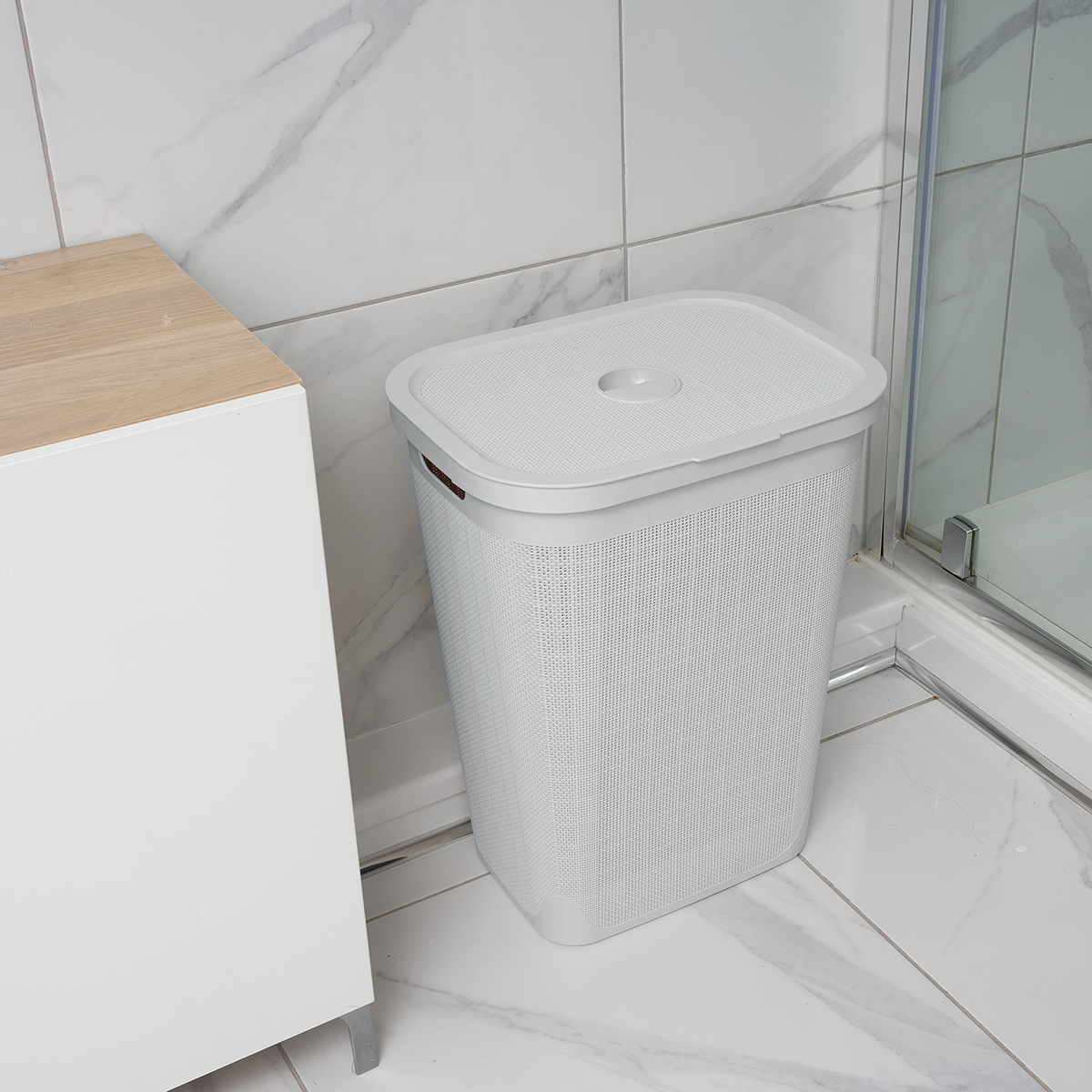 Dankzij het slimme ontwerp plaats je de mand eenvoudig tussen meubels of in een hoek. Het moderne design geeft de wasmand een natuurlijke en stijlvolle uitstraling die moeiteloos in elk interieur past. Voor extra gemak is de mand uitgerust met twee stevige handgrepen aan de zijkanten, zodat verplaatsen een fluitje van een cent is. De wasmand is vervaardigd uit lichtgewicht en duurzaam kunststof. Een praktische en onderhoudsvriendelijke keuze voor dagelijks gebruik.